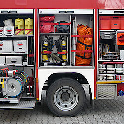 Für Brandeinsätze ist das Fahrzeug mit fünf Pressluftatmern ausgestattet. Im Mannschaftsraum können bereits während der Anfahrt zur Einsatzstelle drei umluftunabhängige Atemschutzgeräte aufgenommen werden.